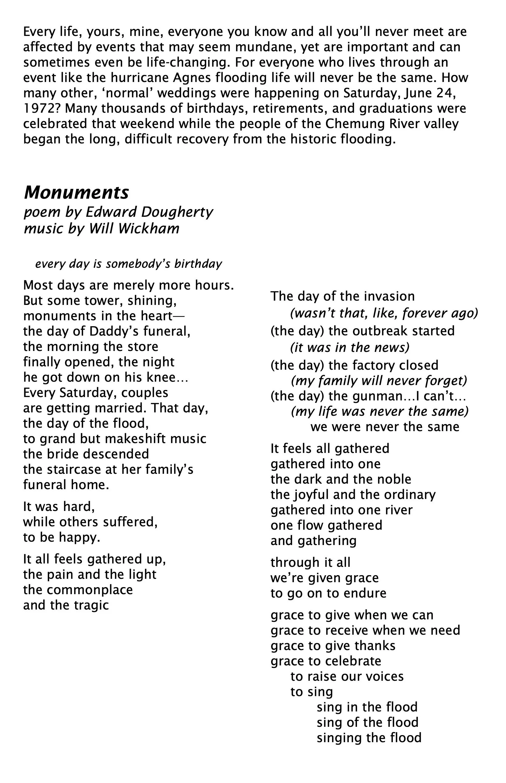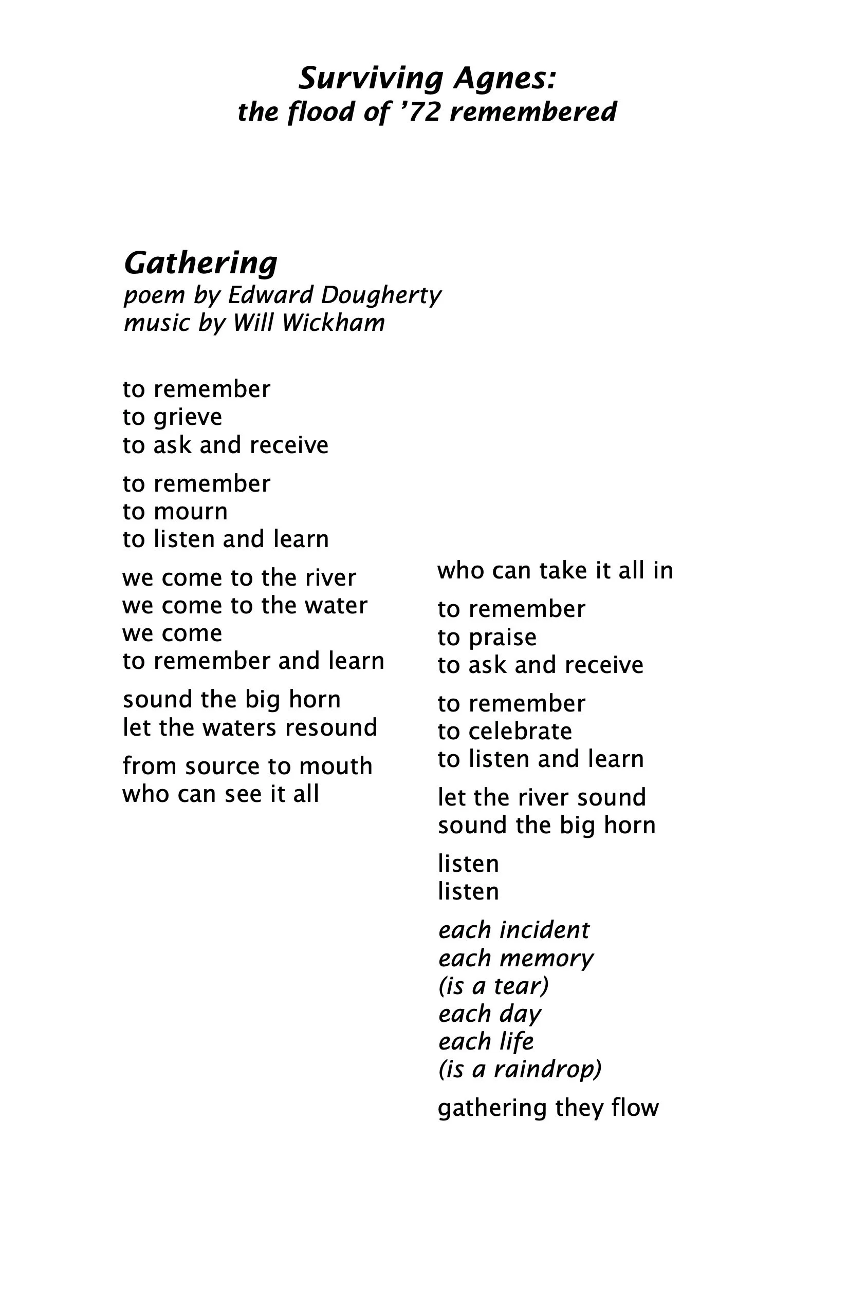 Surviving Agnes: the flood of ‘72 remembered - poetry and lyrics by Edward Dougherty and Will Wickham, music by Will Wickham