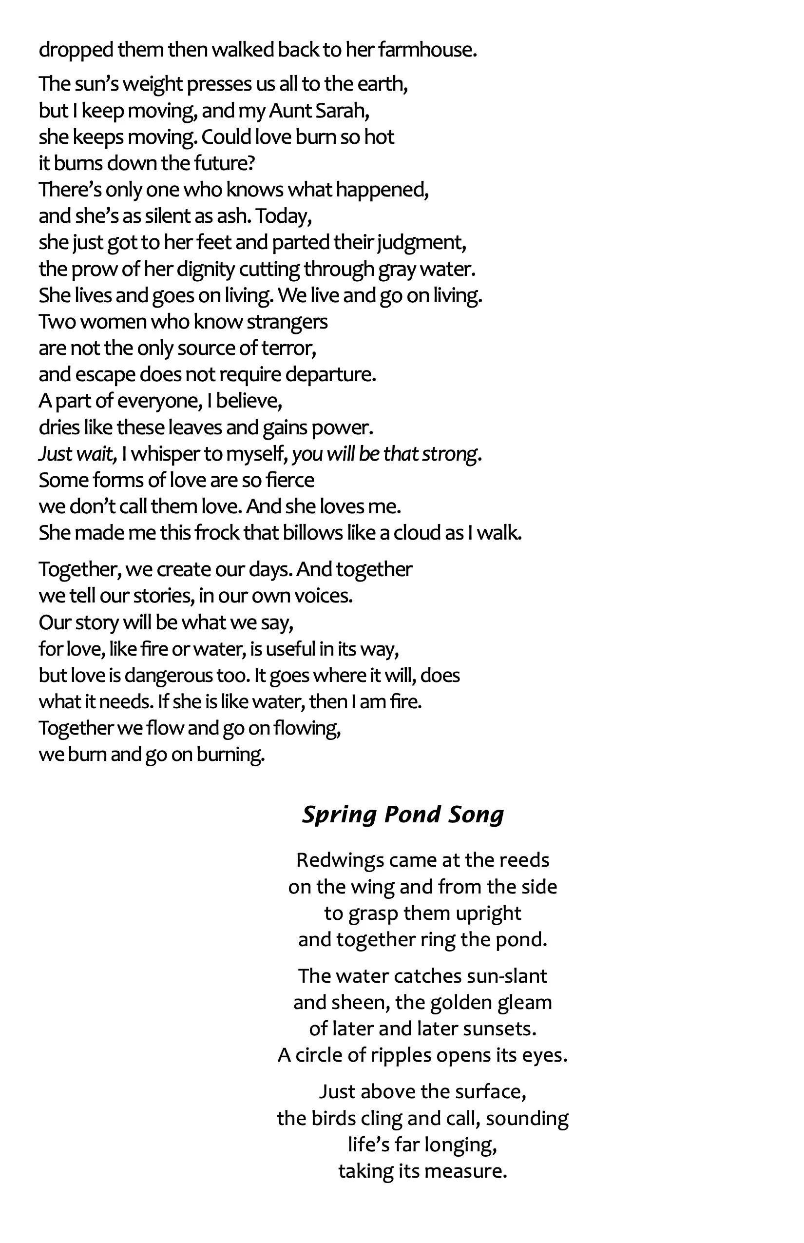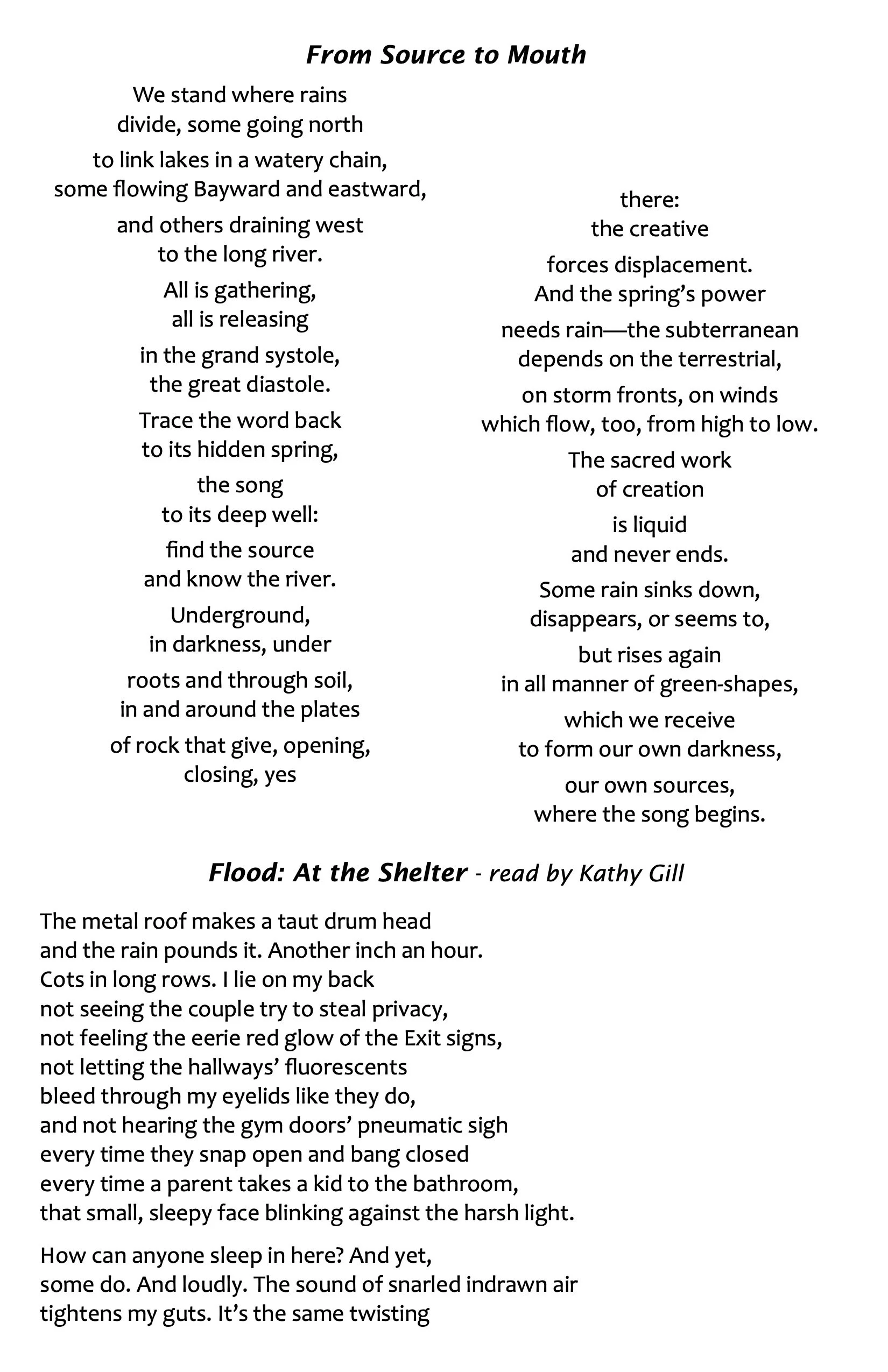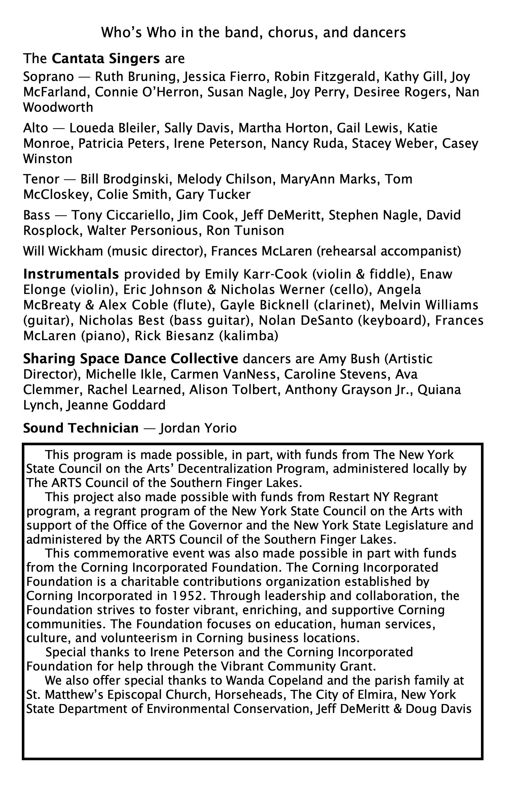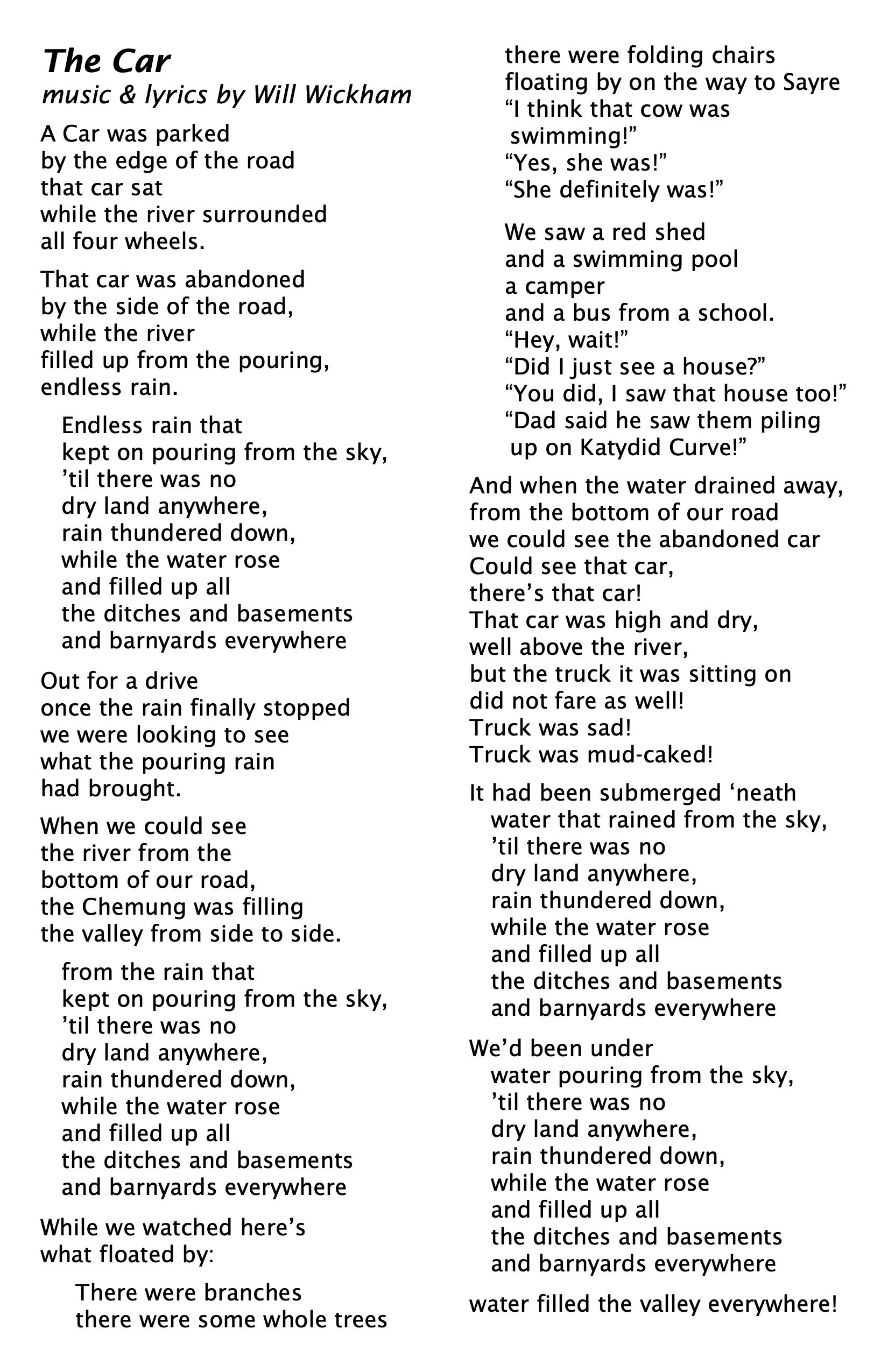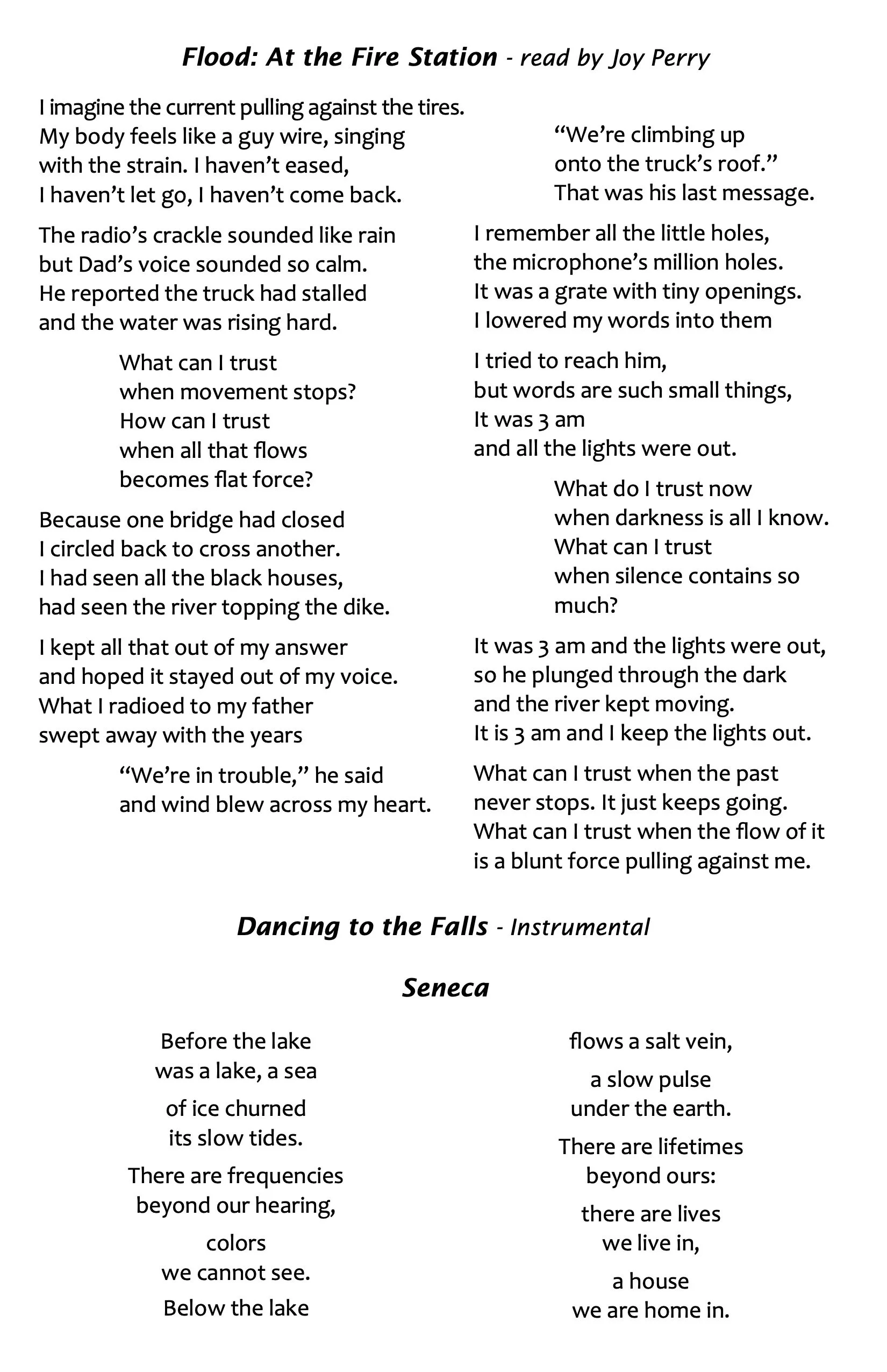 Our program for Sunday, June 5th, 2022 at the Grove Street Boat Launch in Elmira New York! Scroll down for more detailed information and to see the lyrics and poetry.