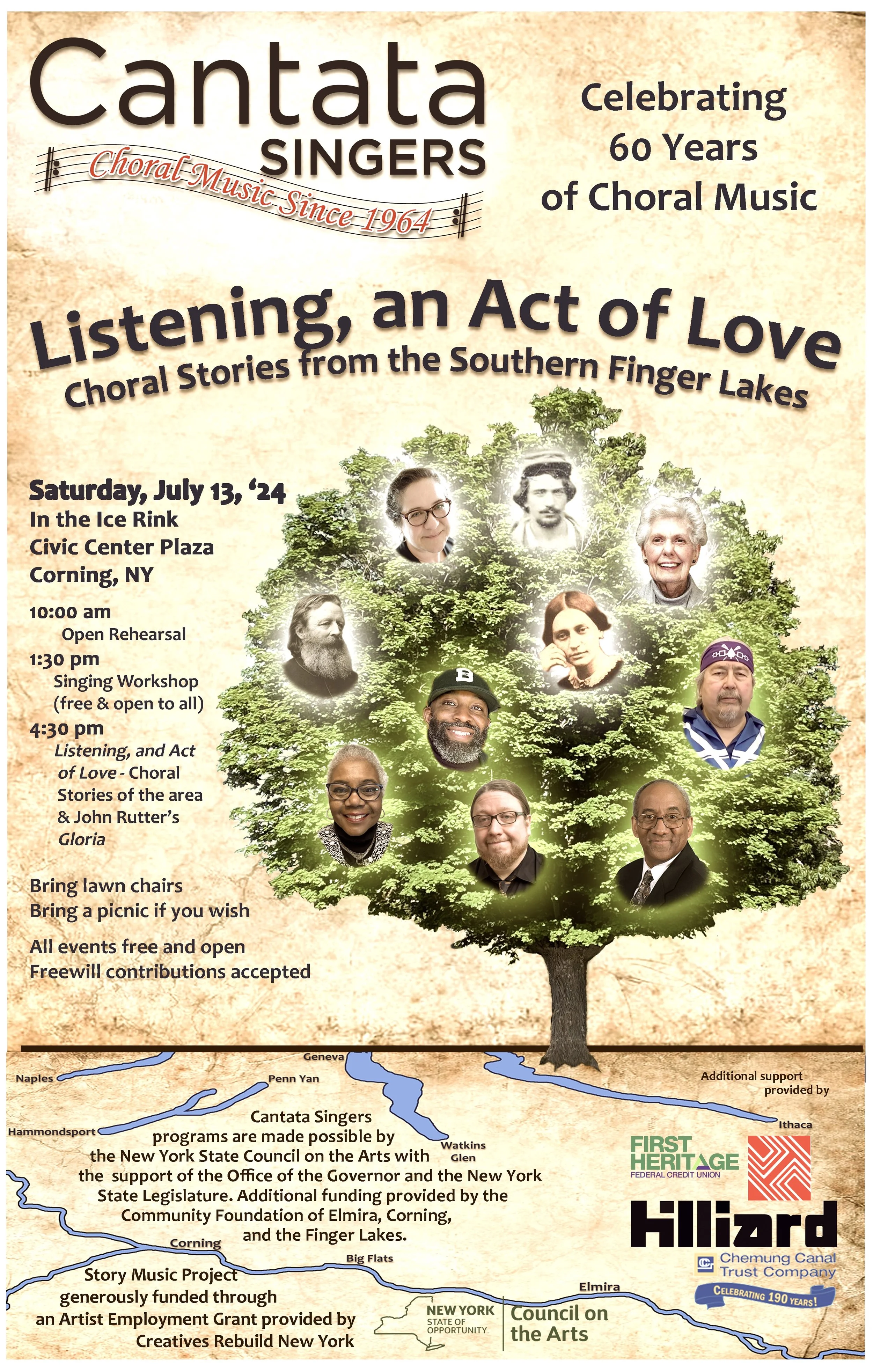 The Story-Music Project was a two-year composer residency funded by a generous Artist Employment Grant from Creatives Rebuild New York. Through the project, composer and music director Will Wickham tells the stories of marginalized voices of the Southern Tier and Finger Lakes Areas of upstate New York. Stories, gathered from a combination of research, interview, and submitted materials became the lyrics of new choral music with a variety of accompaniments from unaccompanied through full orchestra.